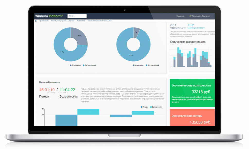 Winnum сокращает сроки, расходы и риски, связанные с внедрением новых бизнес моделей, за счет использования интеллектуальной среды, включающей в себя следующие инновационные компоненты: хранилище больших данных, программное обеспечение для подключения датчиков/ПЛК, платформа для запуска Web приложений и готовые отраслевые решения